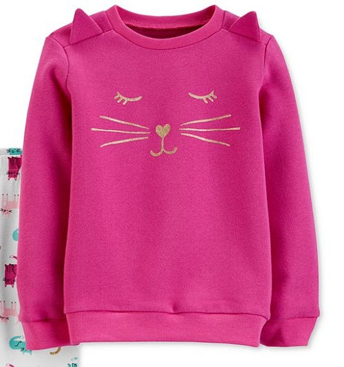 Cozy and totally adorable| Carter's two-piece set features a top designed with a glitter cat face and 3D ears at each shoulder. Cat-print leggings complete the look.| Top; ribbed neckline| glitter cat face with 3D ears at shoulders| Leggings; covered elastic waistband| Top; cotton/polyester; leggings; cotton/elastane| Machine washable