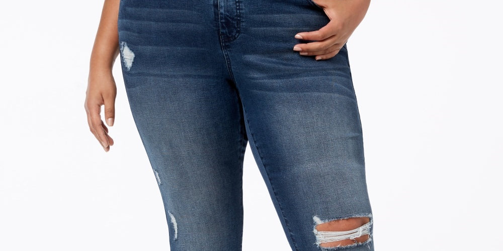 Approx. inseam: 29"|Mid rise|Zip and button closure; belt loops|Destructed details; fading|Please note: size 18W is equivalent to size 18. The tag on this item will read 18. This is consistent for all available sizes.