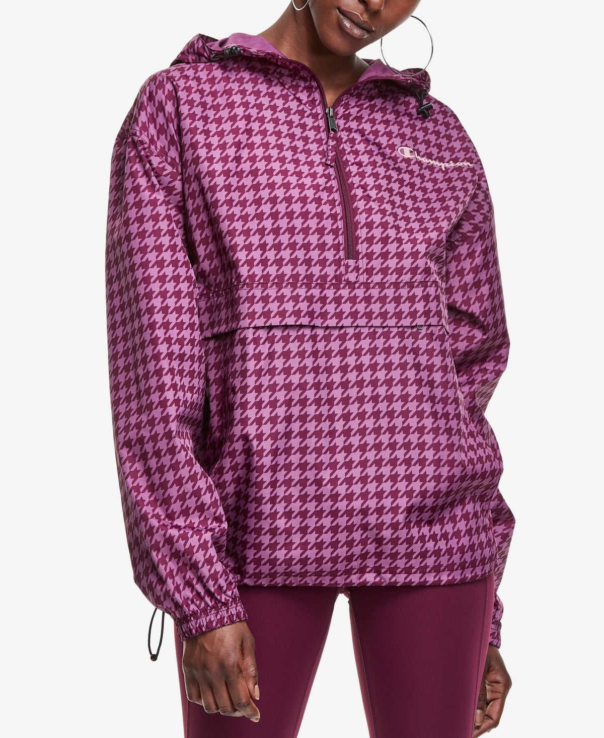 Attached scuba hood with drawstrings; half-zip closure at front; jacket packs into front pocket; pockets at sides; drawstring hem|INSPIRED for; Athleisure|Wind- and water-resistant lightweight poplin|Imported|Connect with a stylist & get free expert advice online or in stores for your wardrobe| home & more. Book Now