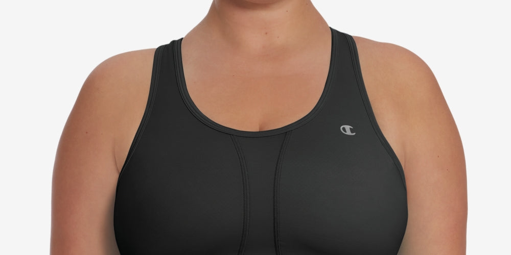 Champion's plus size compression bra is designed with a mesh-inset racerback for ease of motion and extra cooling for medium-impact workouts. | Champion Vapor Technology wicks away moisture and dries quickly| Wide cushioned bottom band resists digging in and riding up| Racerback design with mesh fabric and cutout| Pullover styling| | Shell; nylon/spandex; mesh; nylon/spandex