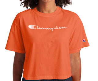 Champion Women's Logo Cropped T-Shirt Orange Size X-Small