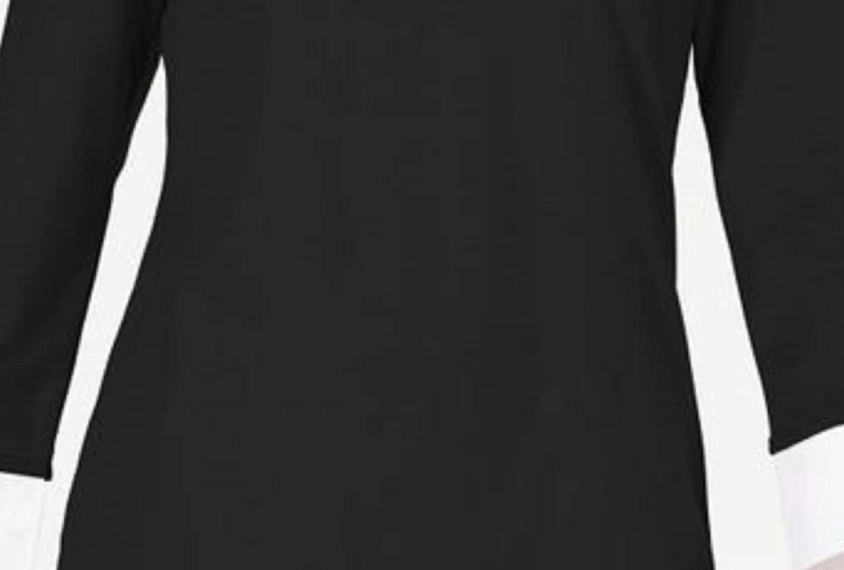 Relaxed fit; hits at hip; approx. 24-1/2" long|Designed to fit and flatter 5'4" and under frame|V-neck on outer layer; contrast woven point collar|3/4-sleeves with contrast woven cuffs|Cotton