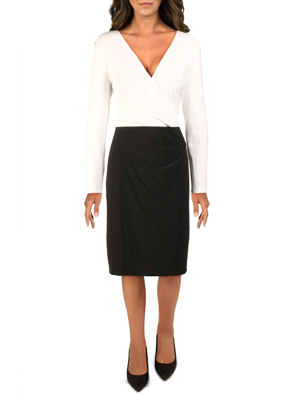 Womens Wear to Work Dress|Two-Tone|Crossover V-Neck