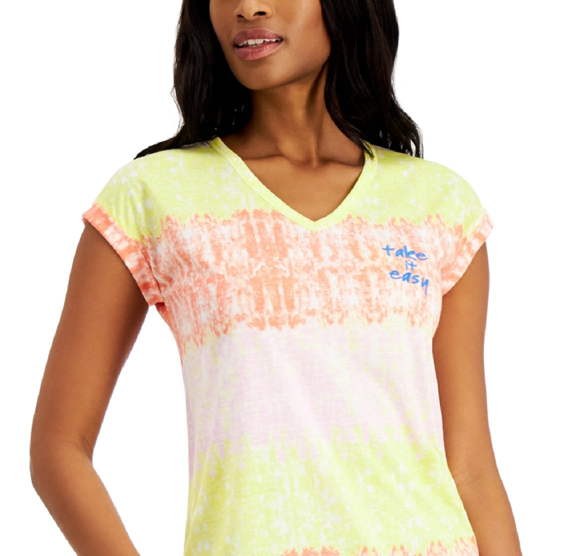 Style & Co Women's Take It Easy Graphic Print Top Yellow Size Petite Medium
