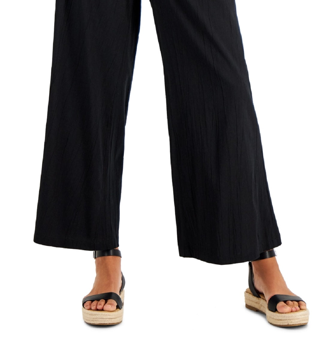 Cozy up to these comfy soft pants from Style & Co designed to pull-on with an effortless elastic waistband.| Approx. inseam; 29-1/2| Mid rise; comfortable fit through hips and thighs; wide leg| Pull-on styling; elastic waistband| Two pockets at front| | Cotton/rayon