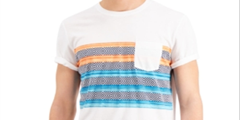 An easy choice when you want total comfort and modern style| This Sun + Stone T-shirt features a handy chest pocket and colorful stripes at the chest