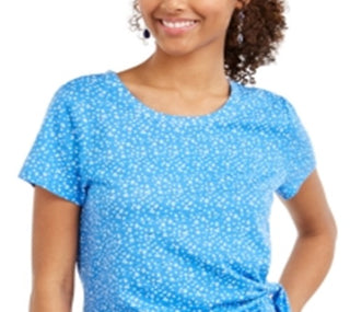 Style & Co Women's Printed Tie Side Top Blue Size X-Small