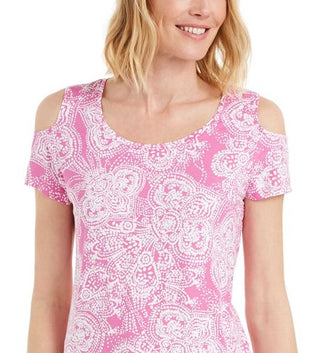 JM Collection Women's Printed Cold Shoulder Scoop Neck Top Pink Size X-Large