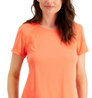 ID Ideology Women's Perforated Crewneck T-Shirt Orange Size X-Small