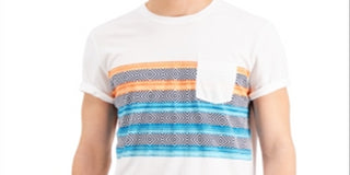 Sun + Stone Men's Striped Chest Pocket T-Shirt White Size Large