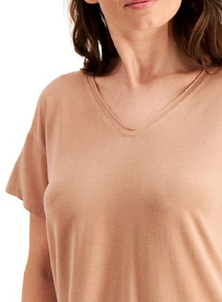 ID Ideology Women's Stretch Ribbed Short Sleeve V Neck T-Shirt Brown Size X-Small