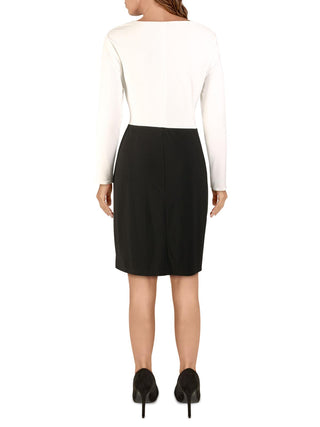 Ralph Lauren Women's Two Tone Crossover V Neck Dress Black Size 16