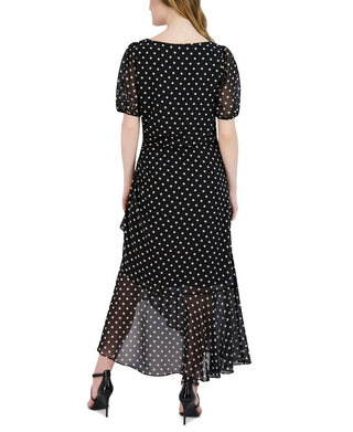 Julia Jordan Women's Polka Dot Ruffled Maxi Dress Black Size 16