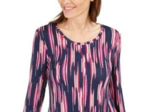 JM Collection Women's Printed 3/4-Sleeve T-Shirt Pink Size Small