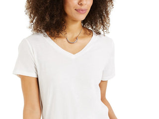 Style & Co Women's Burnout V-Neck T-Shirt In Regular And Petite White Size Large
