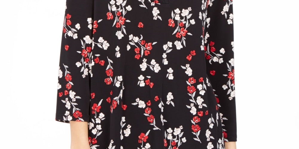 V-neckline|Three-quarter sleeves|Gathered at shoulders|Fitted|Hits at hip