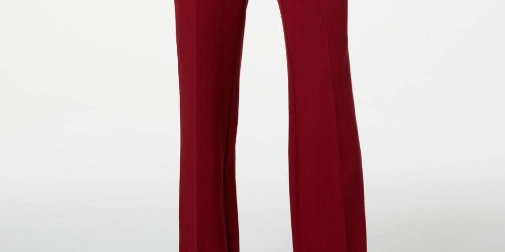 Approx. inseam; 32|Mid rise; regular fit through hips and thighs; trouser leg|Due to generous sizing; we suggest sizing down for the perfect fit|Front zipper with hook-and-bar closure; belt loops|Belted; tummy-control panel|Two pockets at front; two faux welt pockets at back