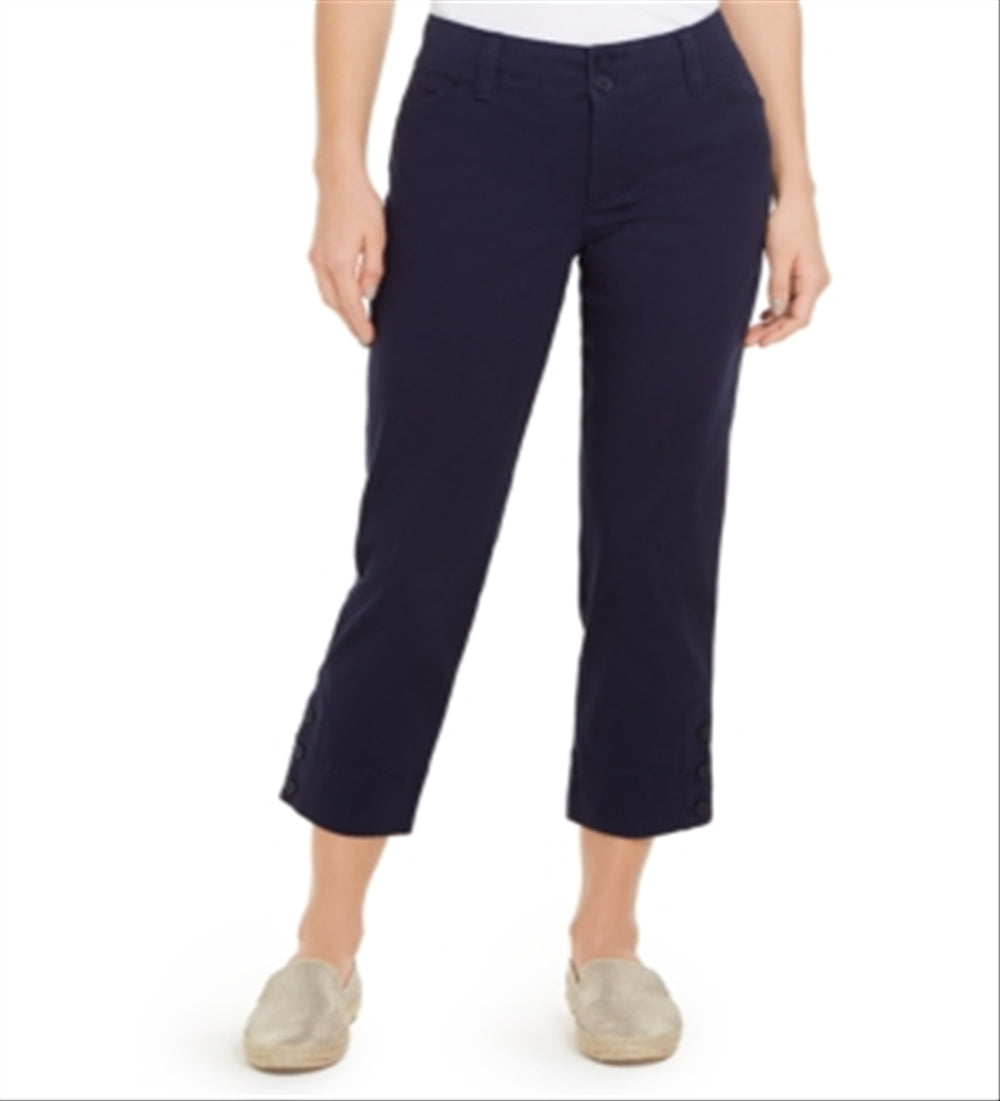 Charter Club Women's Button Cuff Tummy Control Capri Pants Blue Size 14