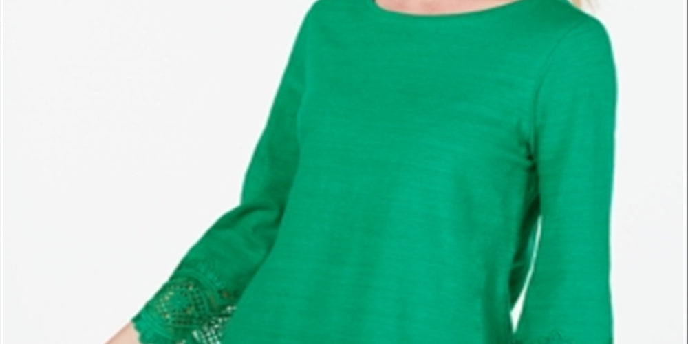 Charter Club Women's Cotton Lace Trim Top Green Size XX-Large