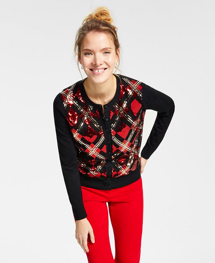 Layered or worn alone| this sequined cardigan from Charter Club provides a show stopping look and endless possibilities
