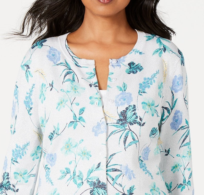 Charter Club Women's Floral-Print Cardigan White Size Small