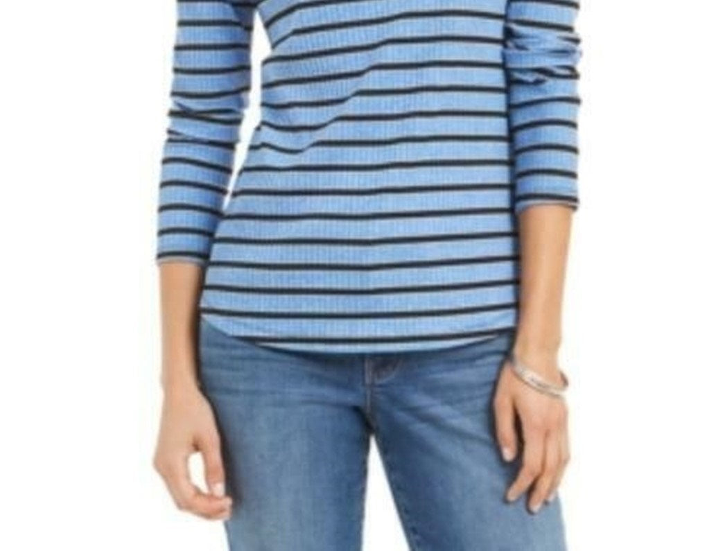 Charter Club Women's Heather Long Sleeve Top Blue Size Large