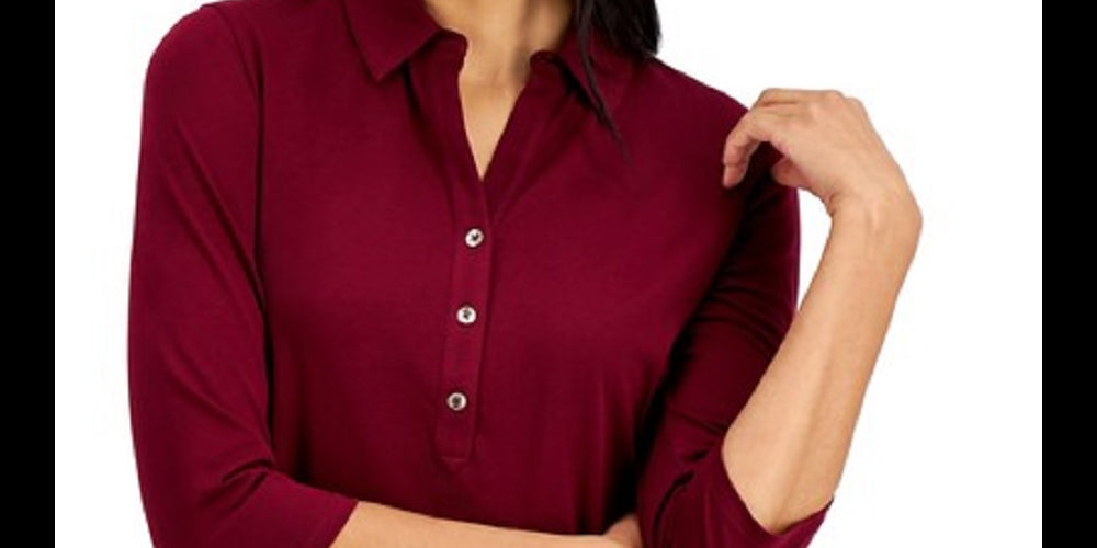 Charter Club Women's Knit Polo Shirt Wine Size Extra Small