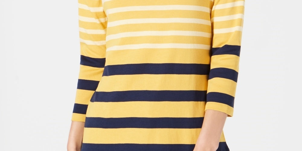 Imported|Boat neckline; three-quarter sleeves|Allover print; button embellishments at shoulders