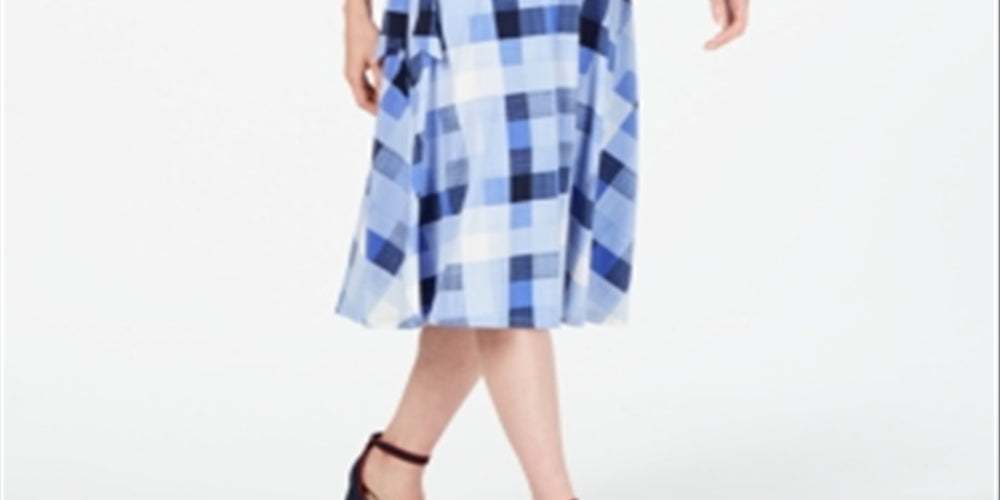 Charter Club Women's Plaid MIDI Dress Blue Size Small
