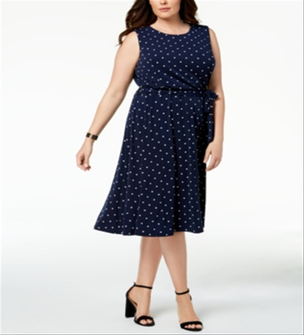 Charter Club Women's Polka Dot A Line Dress Blue Size 1X