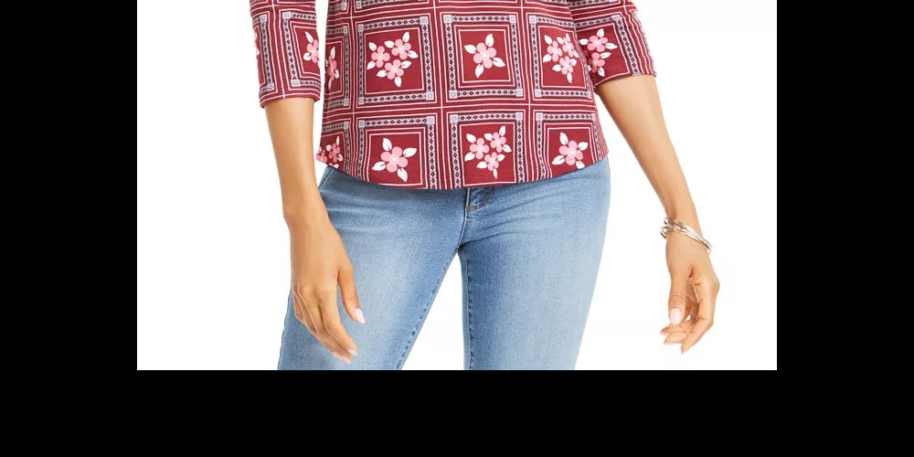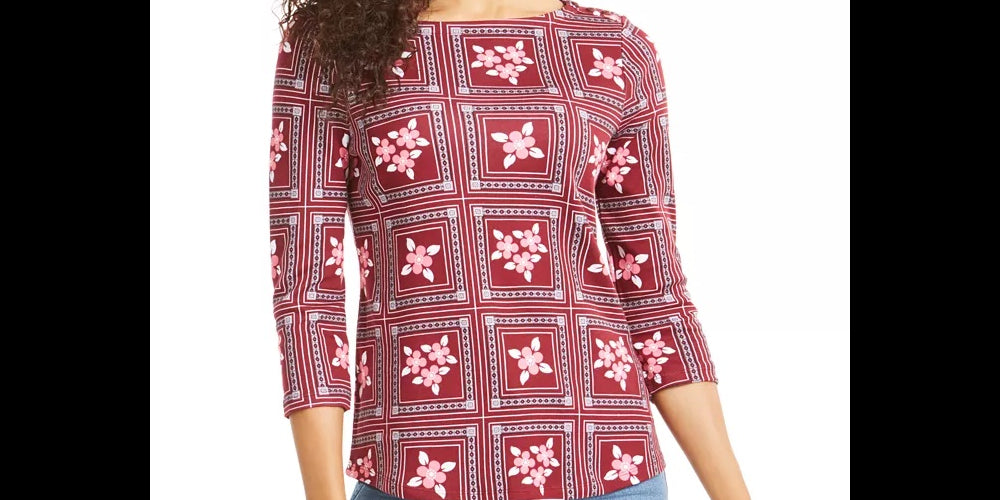 Approx. length: 24"|Designed to fit and flatter 5'4" and under frame|Boat neckline|3/4-sleeves|All cotton|Machine washable