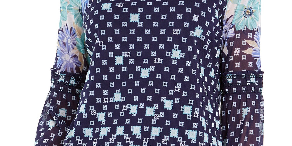 Charter Club Women's Printed Knit Mesh Top Blue Size Extra Small