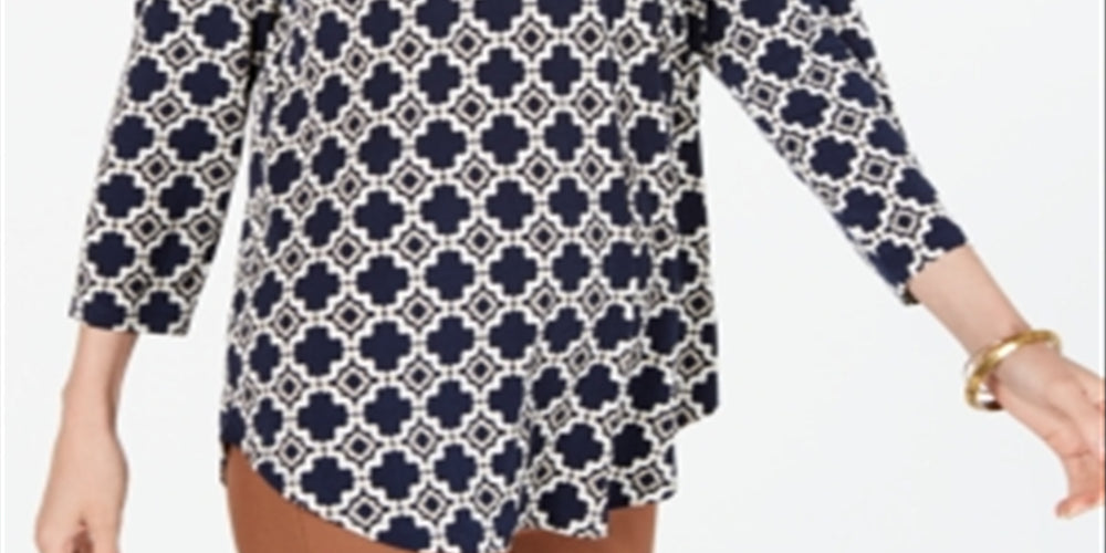Charter Club Women's Printed Pleat Shoulder Top Blue Size S