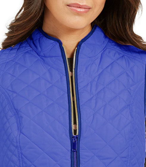 Charter Club Women's Quilted Stand-Collar Vest Med Blue Size Medium