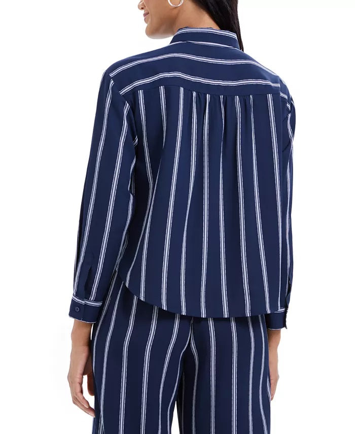 Charter Club Women's Striped Tie Front Shirt Blue Size X-Large