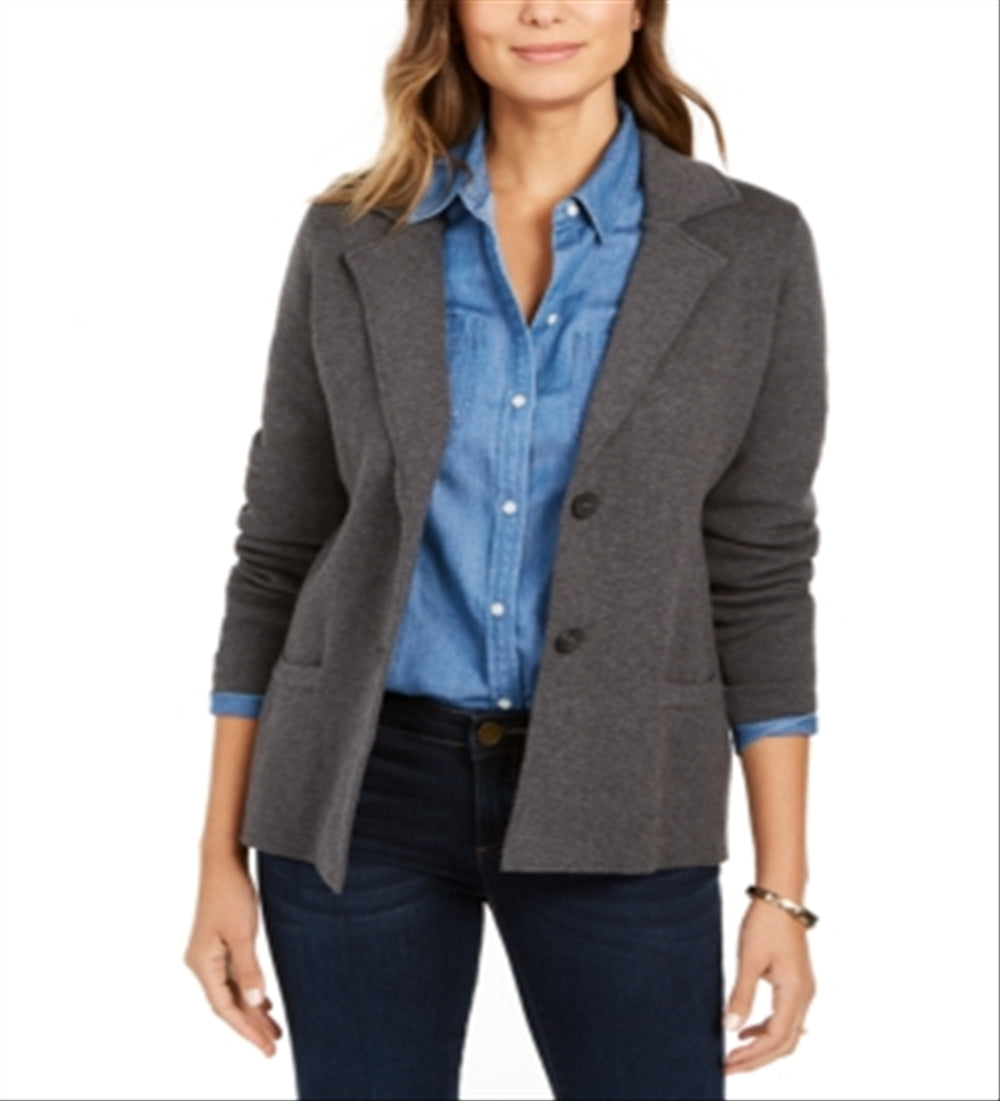 Charter Club Women's Sweater Blazer Jacket Gray Size Medium