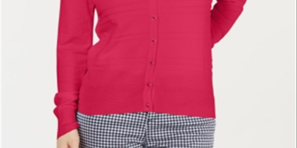 One of fashion's most reliable silhouettes| this classic cardigan from Charter Club is styled with textured stripes for a subtle update. | Fitted; hits at hip; approx. 23-1/2 long | Designed to fit and flatter 5'4 and under frame| Crew neckline; front button closure| Textured stripes at front