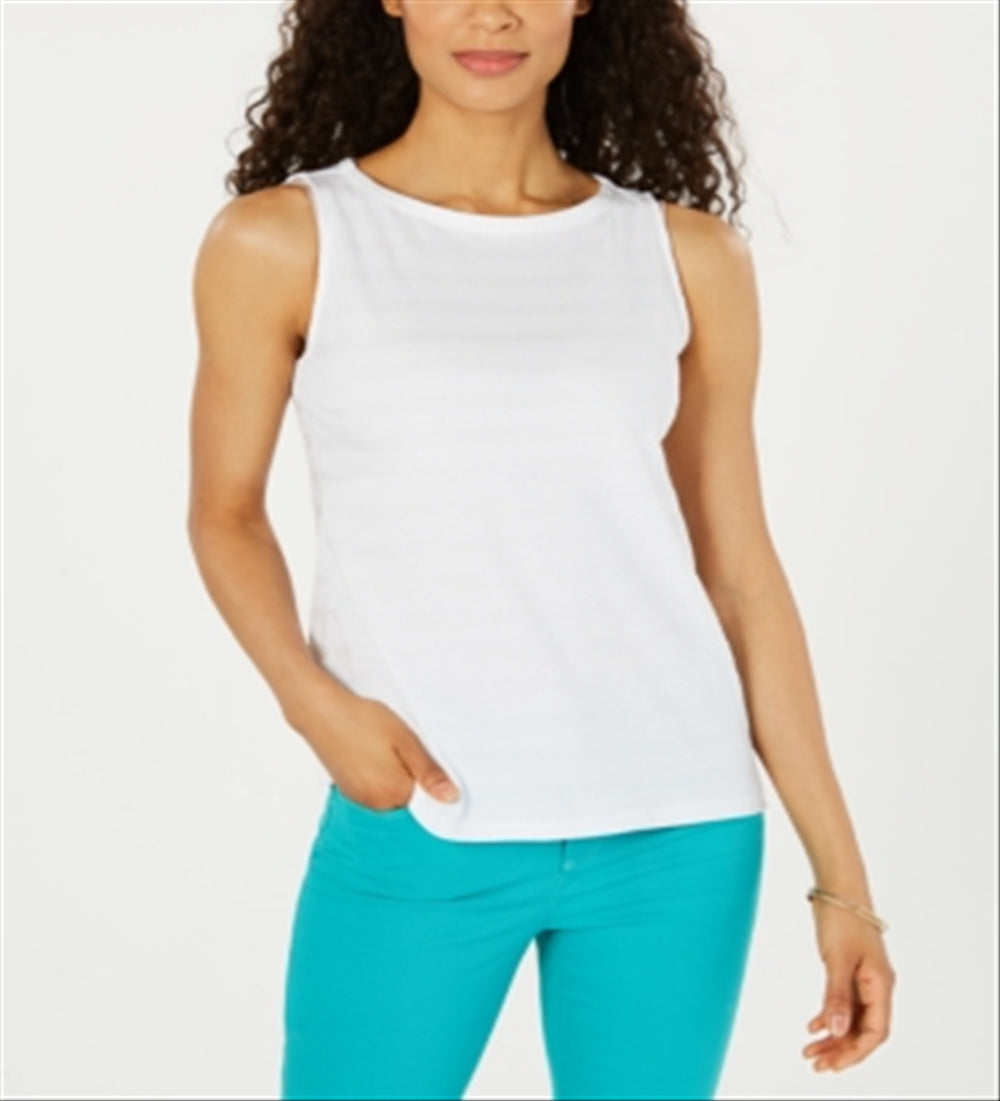 Charter Club Women's Textured Cotton Tank Top White Size Small