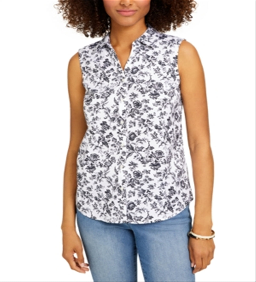 Charter Club Women's Toile Print Sleeveless Shirt Black Size 4
