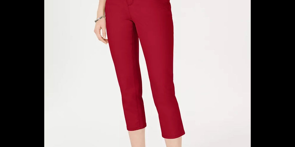 Approx. inseam: 21"|Mid rise|Designed to fit and flatter 5'4" and under frame|Zipper and button closure at front; belt loops|Tummy control panel|Cotton/spandex