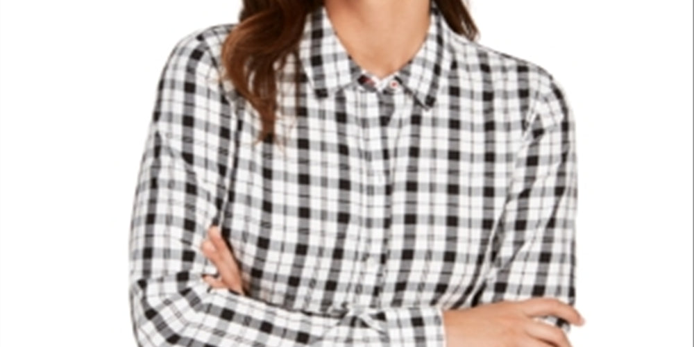 Charter Club Women's Cotton Plaid Shirt White Size Large