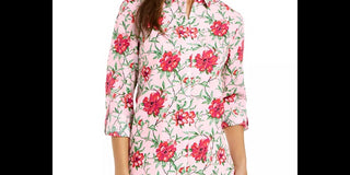Charter Club Women's Linen-Blend Printed Tab-Sleeve Shirt Pink Size X-Large