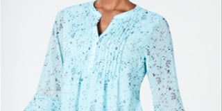 Charter Club Women's Printed Pintuck Top Blue Size X-Large