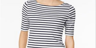 Charter Club Women's Cotton Striped Boat neck Top White/Blue Size Petite S/M