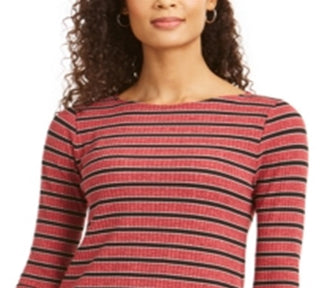 Charter Club Women's Heather Long Sleeve Top Red Size X-Small