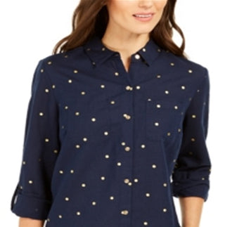 Charter Club Women's Foil Dot Linen Top Blue Size Small