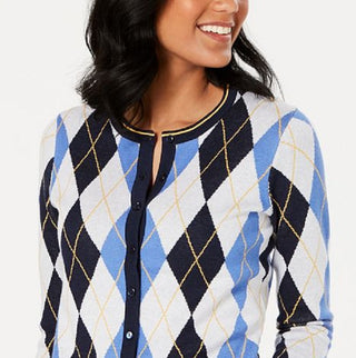Charter Club Women's Argyle Knit Cardigan Blue Size X-Small