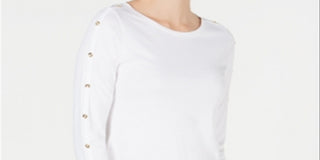 Charter Club Women's Supima Cotton Embellished Top White Size Small