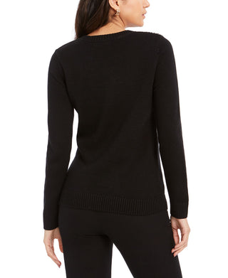 Charter Club Women's Patchwork Sweater Black Size Petite