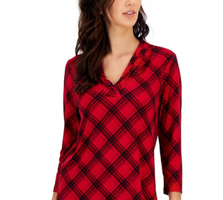 Charter Club Women's Plaid 3/4 Sleeve Top Red Size Petite Medium